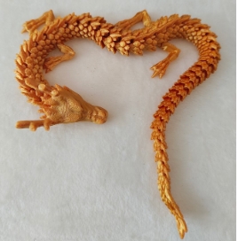 3D打印定制龍年擺件過程是,先在電腦上擺好造型,加上支撐。加好支撐的文件就可以上機打印了,選擇的是SLA工藝,白色樹脂光固化一體成型。光敏樹脂打印,精度高、成型快,易于模型后期打磨和上色。3D打印完成后經(jīng)過洗件、去支撐、打磨,龍的白模就做好了。接下來就可以對龍模型進行上色處理了,處理完成就是成品了,下面看看3D打印龍擺件的成品吧。